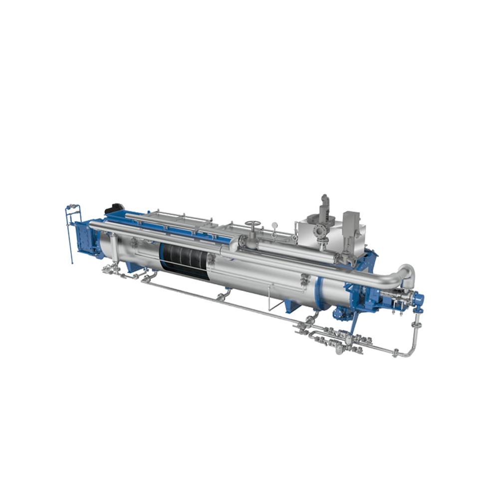 Конденсат, образующийся в паровой рубашке, сливается через коллектор конденсата. Корпус оснащен откидной дверцей на инспекции и очистки. Каждая торцевая пластина оснащена сальником.